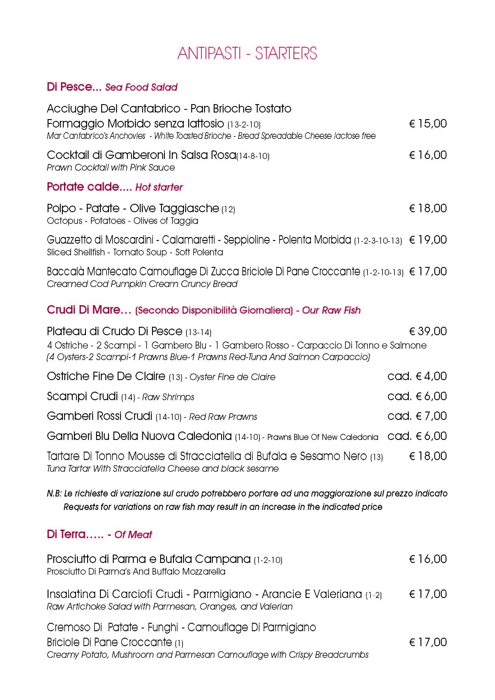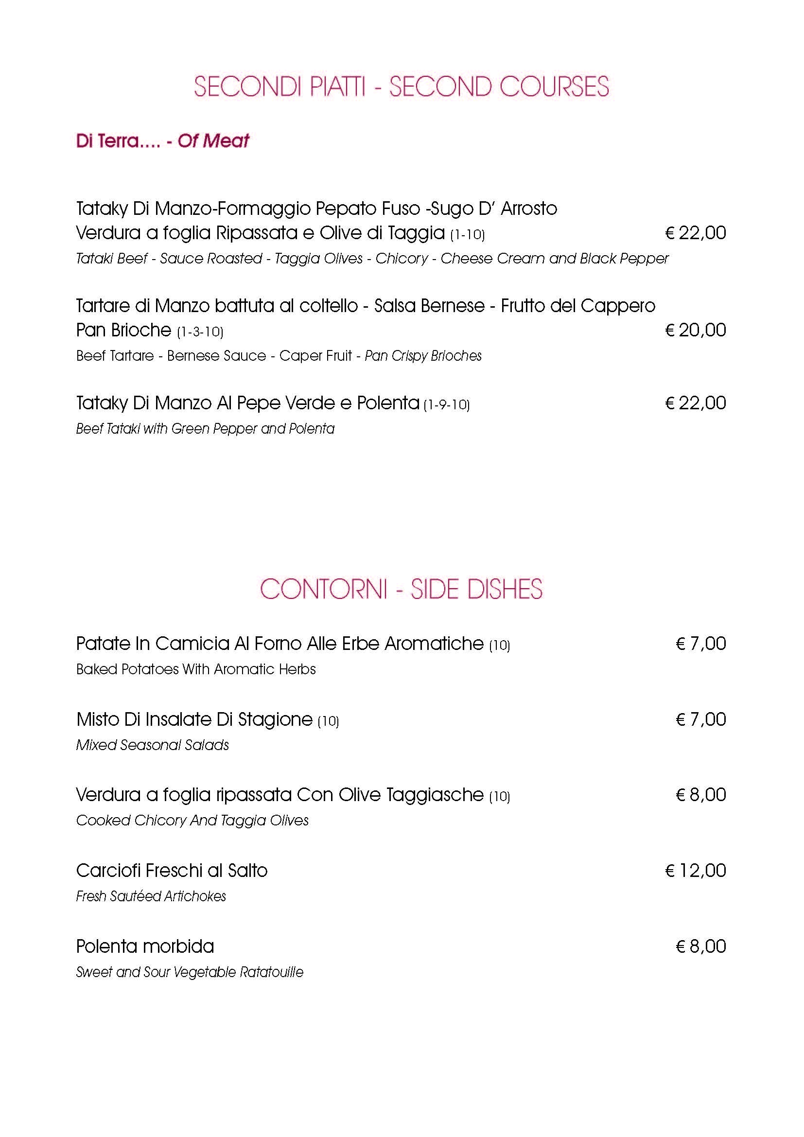 English Menù